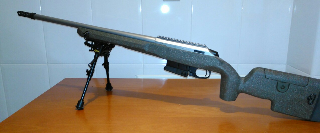Un amigo me pide que le anuncie este impresionante aparato, capaz de capar un mosquito a 300 m. Se trata de un Tikka CTR (Compac Tactical Rifle) cal. 6'5 Creedmoor. Inox y con pelo. Carril Picatinny integrado, cargador de 10. Cañón semipesado de 51cm y paso de 1-8". Culata de fibra de carbono. Pilares de carbono, carrillera ajustable y encamado. Anillas laterales y enganche para bípode. Freno de boca direccional.