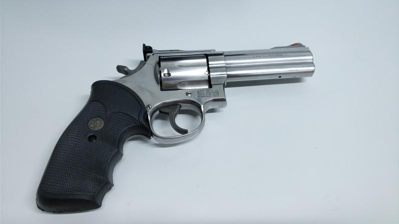 Revolver Smith & Wesson modelo 686 de 4 pulgadas de calibre 357 magnum (y 38 especial para competición de fuego central). Revolver en perfecto estado. Muy bien cuidado.