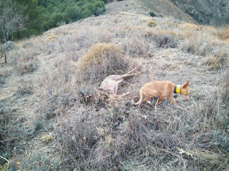 Al poco de entrar en el monte comienzan las ladras y me avisan que sube hacia el collado donde me encuentro, la veo entré la maleza y espero a que cumpla, apunto y de un certero disparo logro abatirla.
