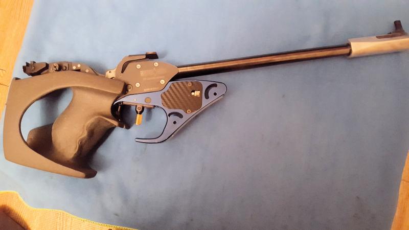 Vendo pistola libre match guns mg5E, cacha de zurdo adaptada talla M y cacha de diestro talla S, maleta, libro, herramienta, originales, va perfecta, sin problemas.