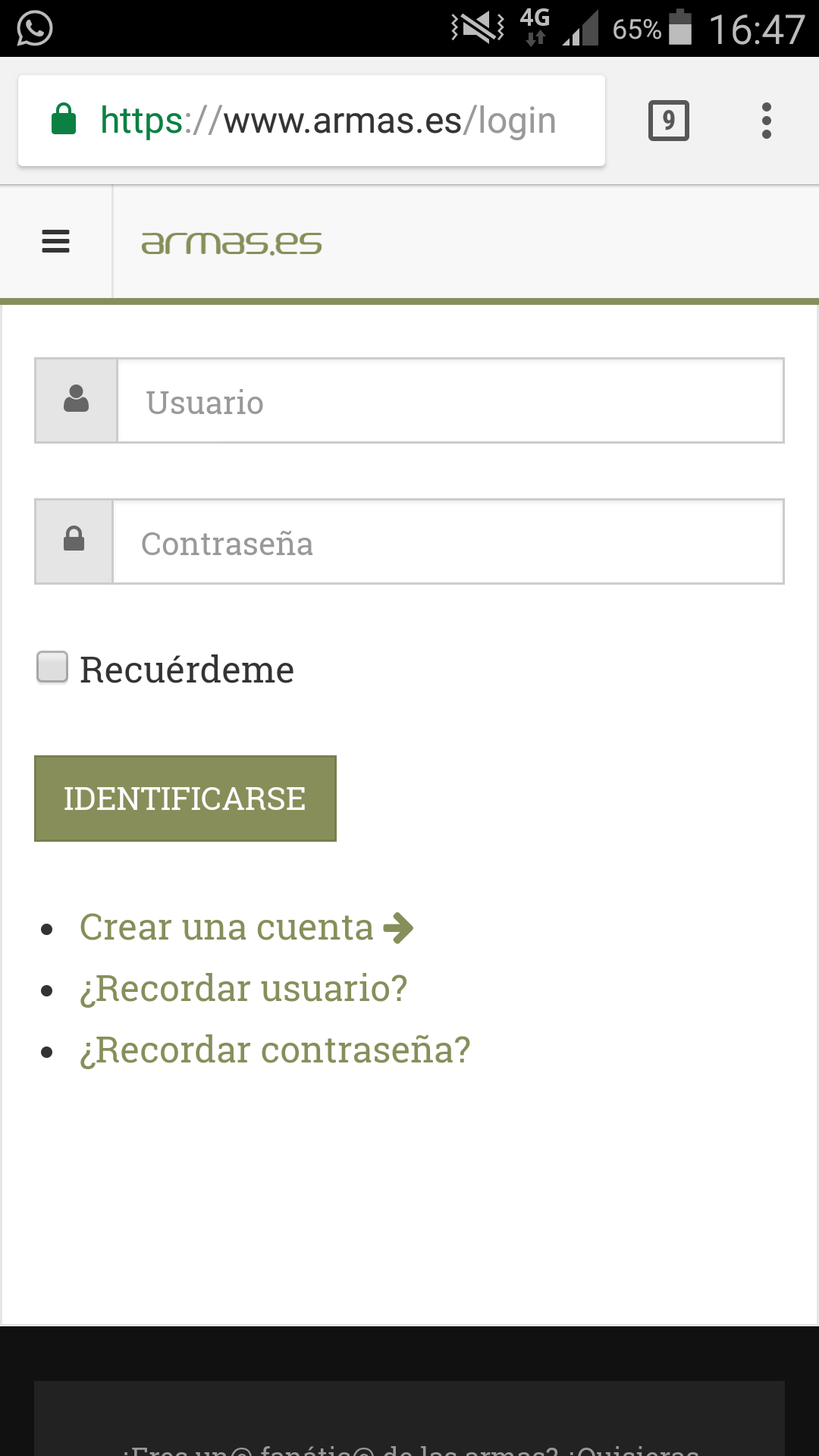 Cuando pones tu nick y contraseña no te da la opción de recuerdame ????? Pero no el navegador si no la propia página de armas.es.