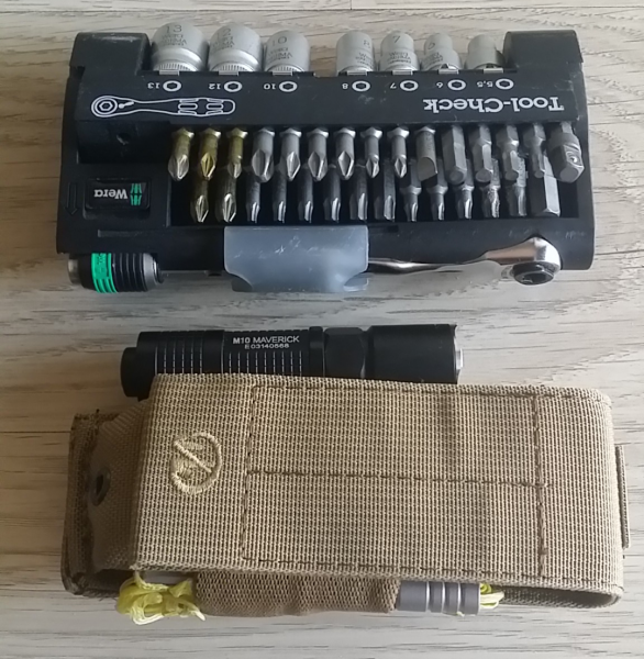 Yo la multi la tengo complementada con un extensor modificado y un estuche portapuntas, que quiero mirar de cambiar por un portapuntas más pequeño y llevarlo en el estuche de la navaja.