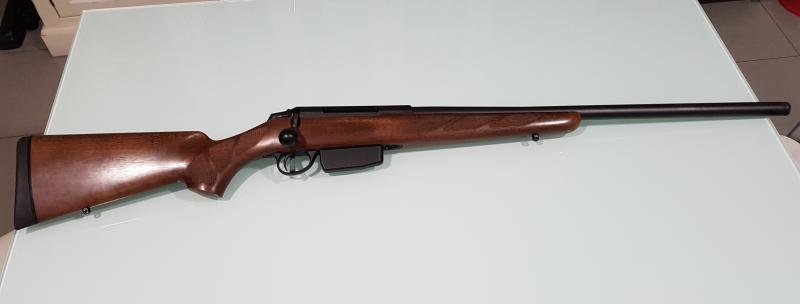 Hola, se trata de un rifle Tikka T3 Sporter en calibre 6.5x55 al que se le ha cambiado la culata de tiro por una de caza. Se ha trabajado la madera en la zona del cañón para asegurar que no roza en ningún punto. Tiene gatillo con pelo.