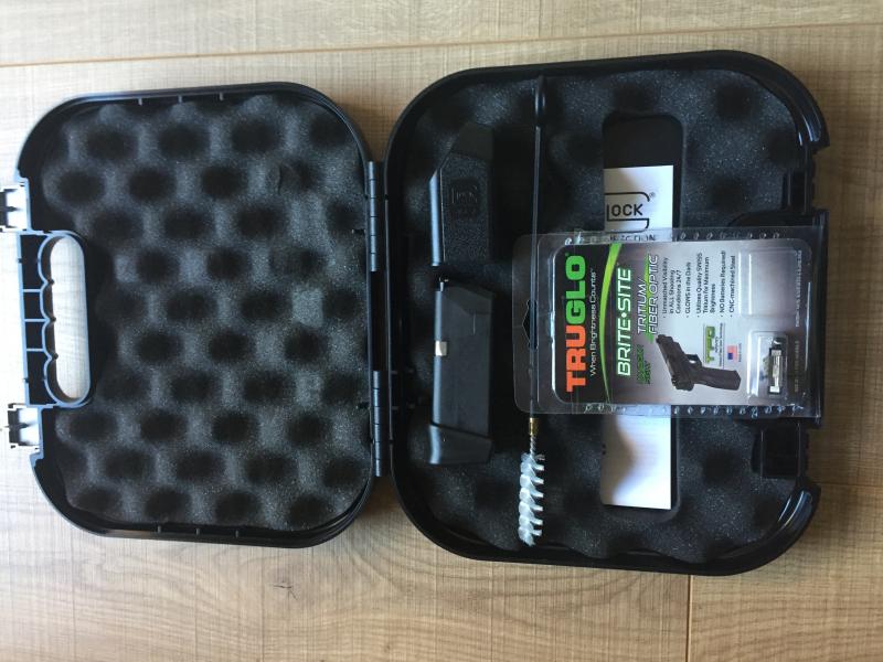 Pongo a la venta mi Glock 26 bicolor, con pocos disparos, solo se ha hecho servir el cargador de 10 cartuchos, lleva miras Truglo, se entregan también las miras originales, dos cargadores, baqueta, caja original, ha disparado unos 600 cartuchos comerciales