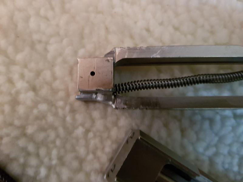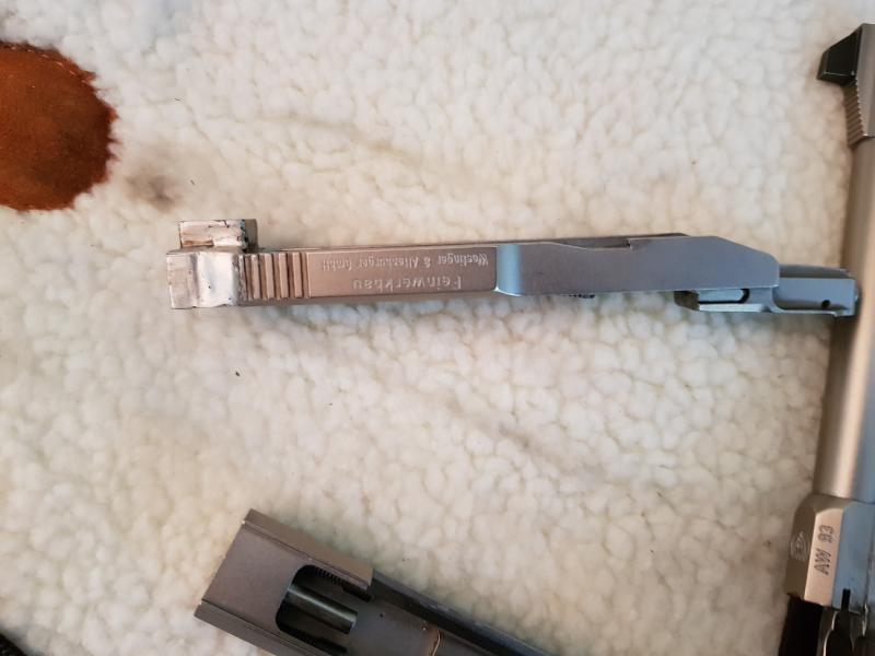 Añado en el anuncio fotos de la soldadura en la corredera por todos los lados, para que se pueda observar perfectamente que está en un estado impecable. En la parte contraria (la ruptura según está montada la pistola sería delante y a la derecha) tenía una pequeña fisura que no llegaba a romper la pieza pero por mayor seguridad se soldó y ya se ve el estado.