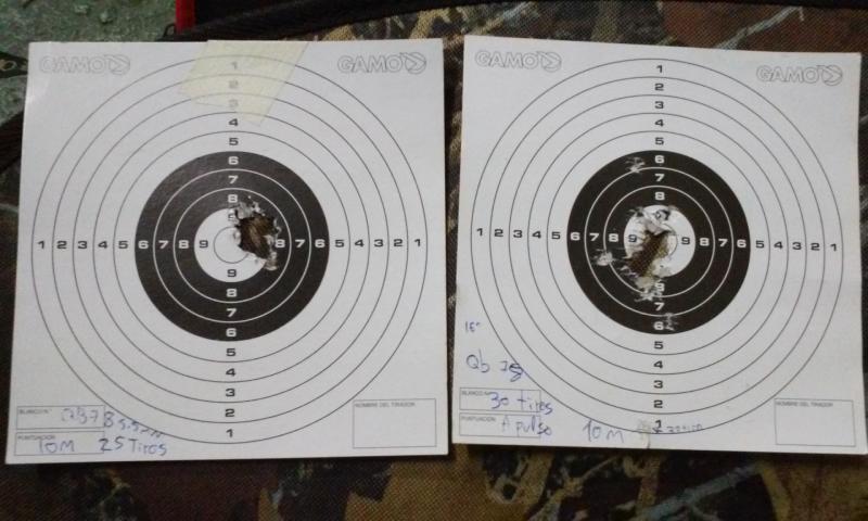 Agrupaciones a 10m com visor3-10x32(chinoscope) a 3× a pulso y apollado con gamo magnum 5.5