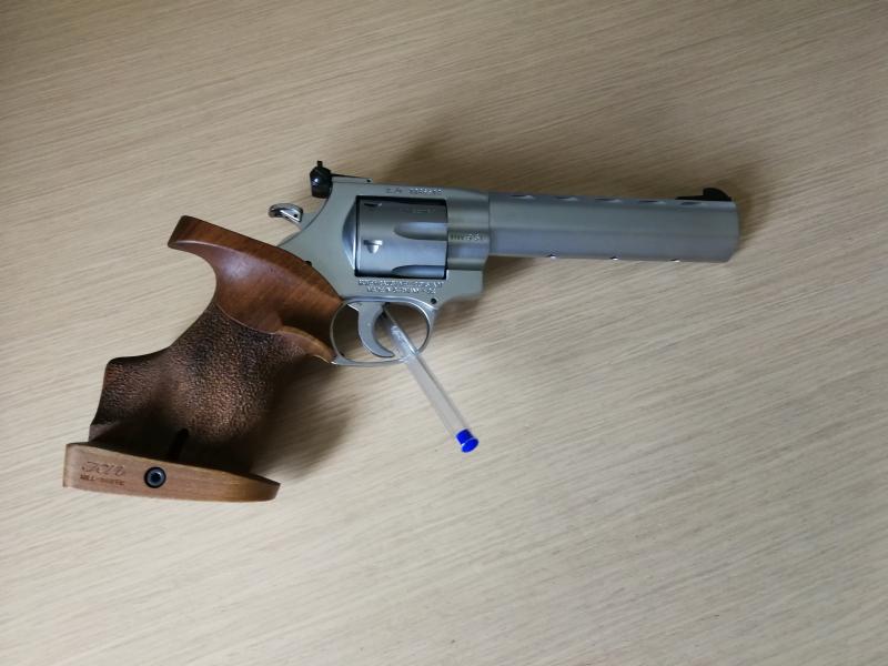 El tacto del revólver no puede ser mejor (está confeccionado según los deseos de tiradores -según dice el fabricante-). Es un arma pesada (debe pesar 1.100 gr.) aunque muy equilibrada. Ya digo que podemos probarla en Cantoblanco sin problema.