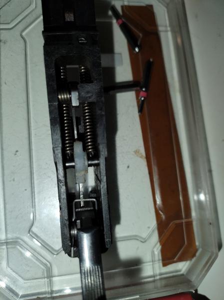 El único sitio que he visto que pudiera ir es en un eje del caset de disparo que sujeta los dos muelles del martillo, por encima va una lámina alargada, metálica que libera el martillo al accionar el gatillo, creo que es la retenida, y que por el grosor pudiera ir en la ranura de la pieza y ésta en el eje que he mencionado antes, pero esa piezas tienen un recorrido muy delimitado y no estoy muy seguro de que función pueda tener ahí... En fin, no sé si me explico bien pero bueno....en cuanto pueda iré al campo de tiro y veremos que pasa.