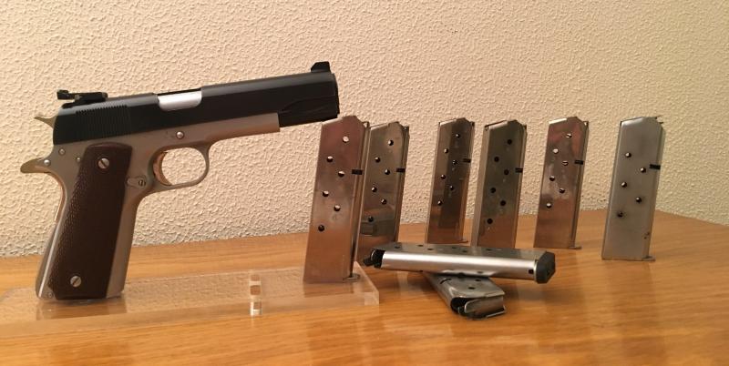 Vendo pistola marca NORINCO calibre 45 ,buen estado , gatillo y martillo chapado en oro, CON 7 CARGADORES.