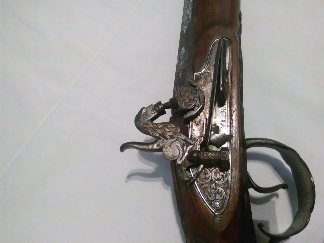 En los sellos creo leer "Fco Ylera", pero no encuentro ninguna referencia a el, ni en los sellos de los arcabuceros reales, ni en los de Madrid, ni en los del Pais Vasco. Pero sin ningun genero de dudas es una obra de arte.