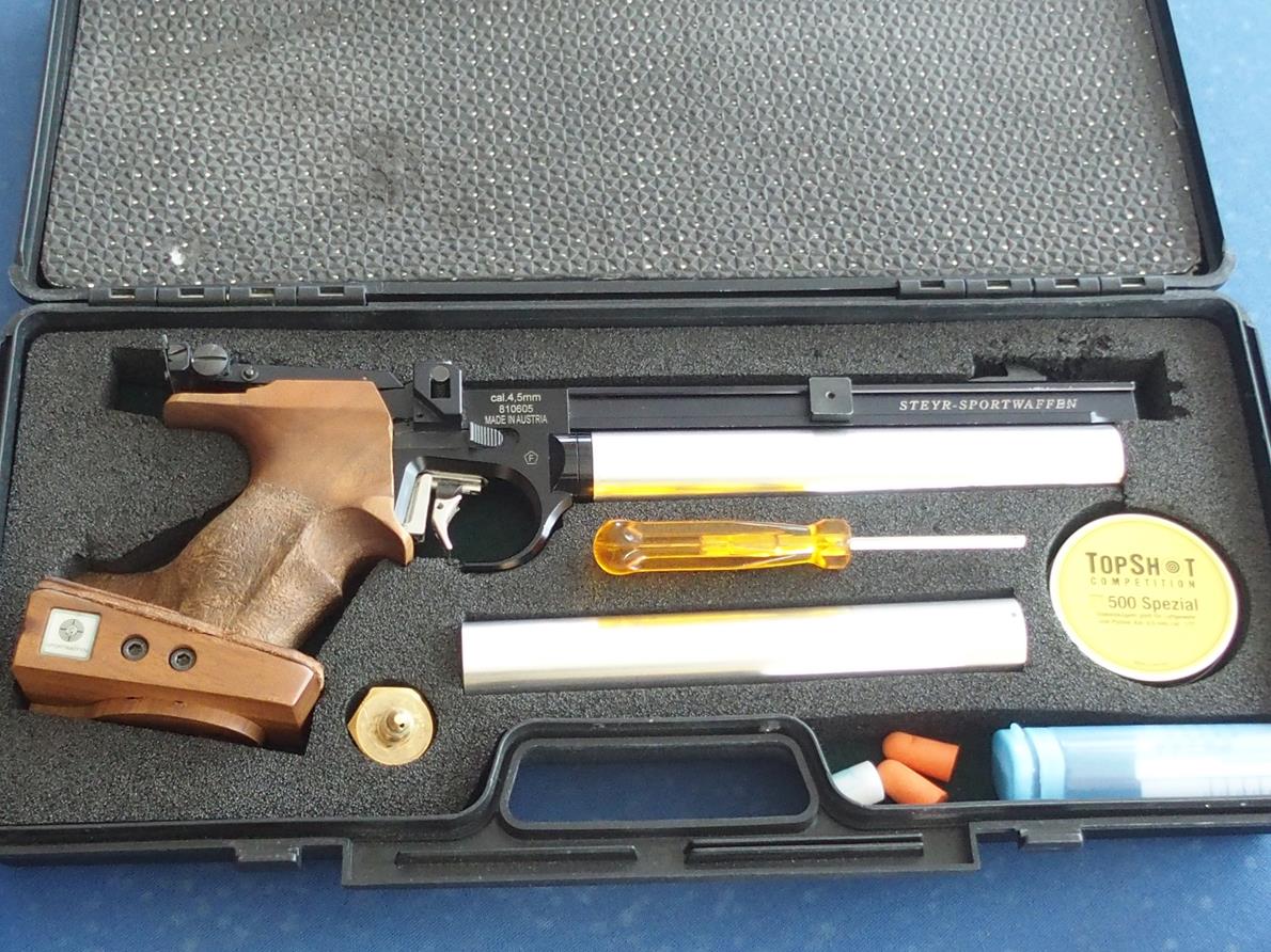 Se vende Steyr de 5 disparos, funcionando perfectamente. Dispone de 2 bombonas de 2007 totalmente operativas. Cacha Morini de tamaño M. Incluye 6 cargadores de 5 disparos, 1 para tiro en seco de entrenamiento y 1 de un solo disparo por si se desea utilizarla en las competiciones neumaticas normales. Se incluye un punto de mira adicional.