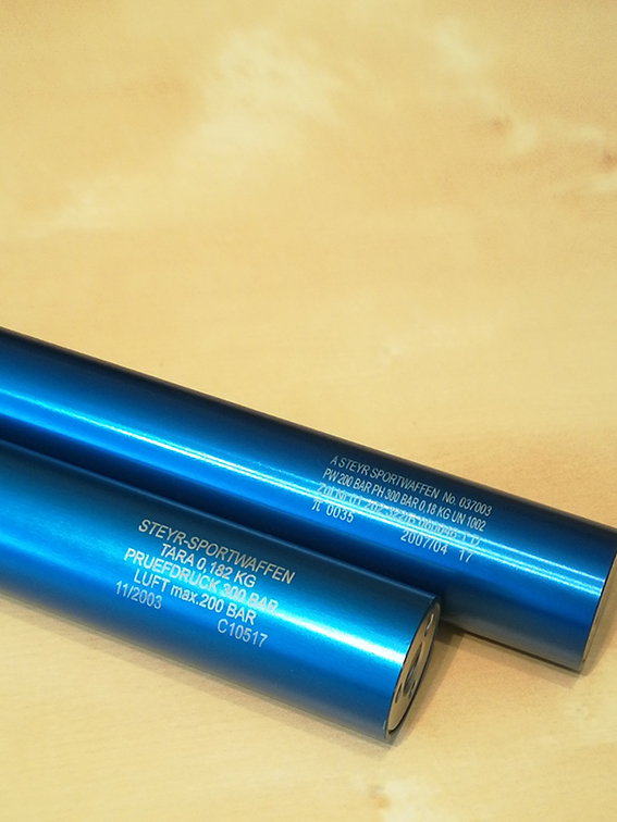 Vendo 2 cilindros de aire para Steyr LP10, LP5, LP@, LP50, EVO, etc, con fecha de fabricación 11/2003 y 04/2007 por lo que ambas tienen mas de 10 años. Funcionan perfectamente, sin fugas y con los manómetros en perfecto estado. Vendo porque no las uso. Ideal para aquellos que quieren tener un "extra" de autonomía en los entrenamientos o quieran cambiar el color de sus botellas actuales.