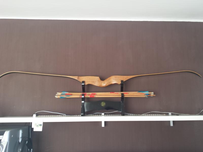 Es precioso, de una pieza con palas reforzadas compuesta. Siempre destensado y sin uso. Como nuevo. Mide 64" 28" de apertura y 34 libras de tensión. La sensación de tiro es impresionante, para quien le guste lo auténtico. Fabricado en NEWMARKET, Ontario, CANADA. 190 euros. Saludos.