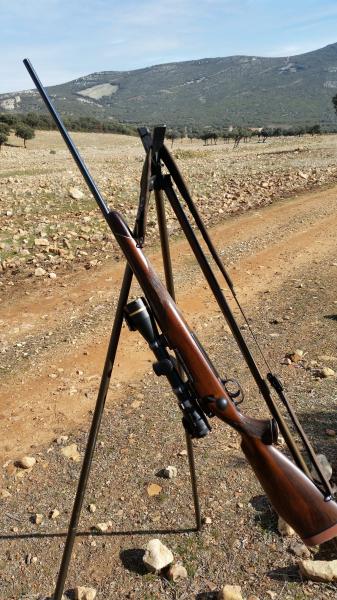 La bara te ayuda mucho para caminar, el tripode pues hay que tirar por el, si el rececho es caminar algo y otear mucho, el tripode, si lo que hay que caminar es mucho la bara y la mochila. Y eso que hay baras que meten miedo porque pesan como un palo de la luz.