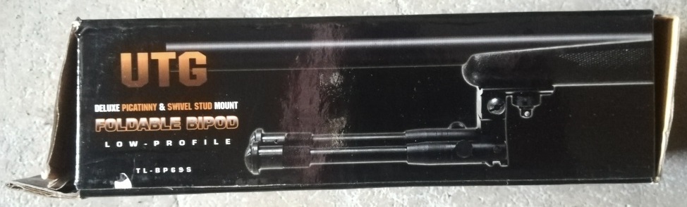 El bípode es de la marca UTG, plegable hacia adelante y con las patas "extensibles". Es robusto y estable (eso sí, evidentemente no aguanta una comparación con un bípode Harris). Sirve para anclar en un rifle (creo que en la base de la anilla del guardamanos) y en un rail picatinny (que es como la tenía yo). En su día me había costado unos 80,00 €, no recuerdo exactamente (también comprado en la Armería Marcial, en Ourense). Igualmente conservo su caja original, con todo lo que venía en ella.