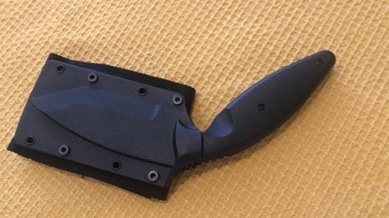VENDIDO Cuchillo de reserva Acero AUS 8 A acabado en negro Cachas de zytel color negro Filo liso Diseño de John Benner Funda de polímero. Se regala acople original tipo clip además del que viene con el cuchillo (cuesta 17,50€)