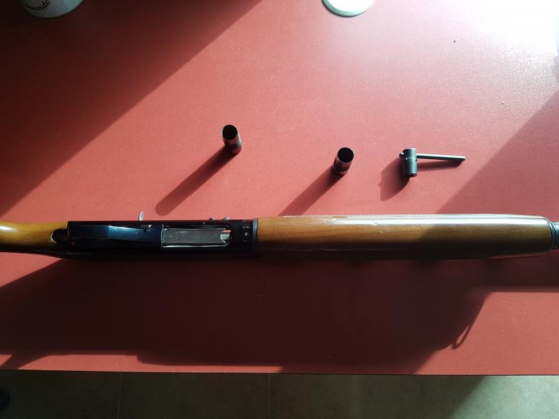 Escopeta repetidora del calibre 12 ( 3 cartuchos) de la marca Lanber con 3 choques para que abra o cierre el plomo. La escopeta se encuentra en Aranjuez (Madrid).