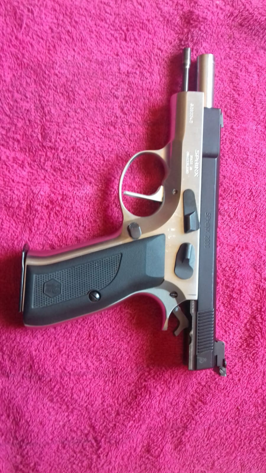 Vendo esta pistola suiza de la marca Sphinx. Os recomiendo que busqueis por internet informacion de esta pistola, os sorprendera de lo que estamos hablando.Esta preparada para precision, gatillo recto instalado y afinado por armeria Mestres , algunos conocereis como trabaja este armero. Esta en simple accion pero tengo las piezas para volver a dejarla en doble accion. Miras micrometricas instaladas.El arma esta en perfecto estado mecanico y estetico. Como clon de la CZ admite accesorios de la misma. Solo usada en precision y con unos 3000 tiros dados. 600 euros mas portes. Esta en Barcelona y quiada en F.