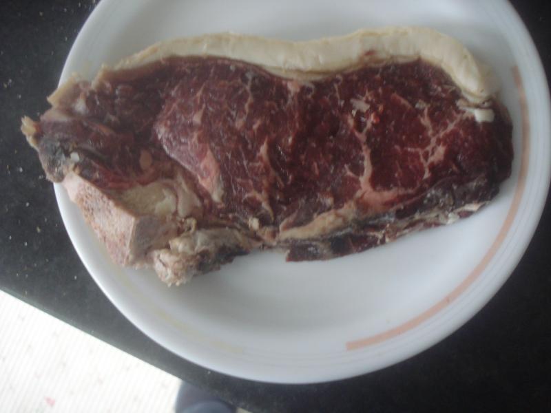 Para ahora mismo o dentro de un ratito, chuleta de vaca vieja, pongo foto para que se vea la infiltración de grasa en el músculo.