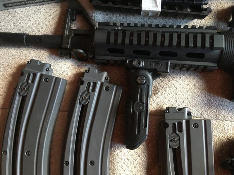 Tengo sus manuales, correa de transporte, visor con reticula iluminada, guardamanos de aluminio para colocar accesorios por los cuatro lados y ademas el guardamanos original.