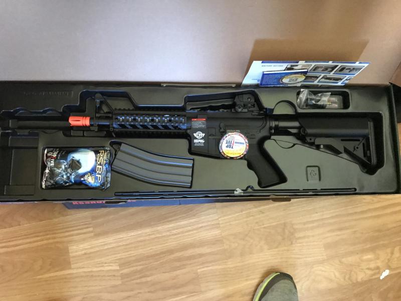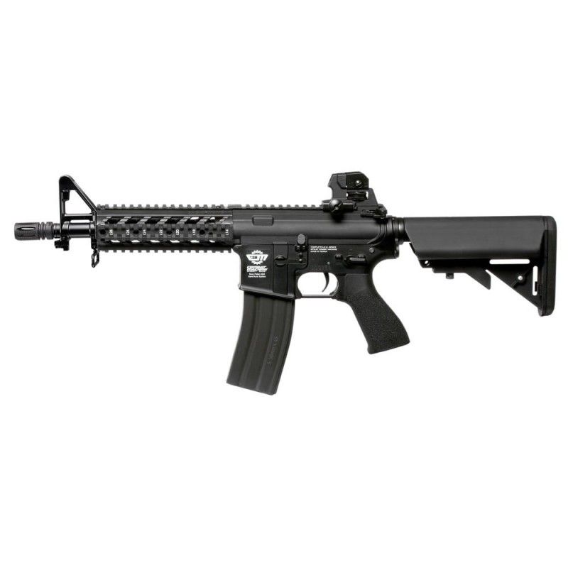 Fusil eléctrico CM16 Raider. Fabricada en Polímero Reforzado. Los rodamientos son de 8mm. Réplica con culata crane y ris. Cargador con capacidad de 450 bolas de 6mm.