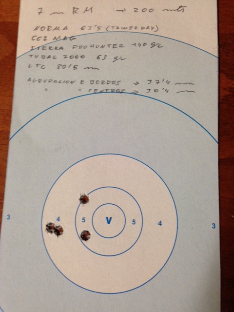 1. Dos tiros cañón limpio, para ensuciar. Bien. 7mm entre centros. Sako Gamehead 123gr.