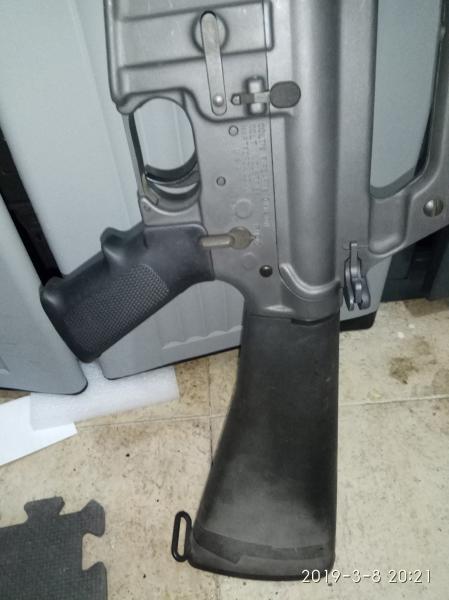 El descolorido de la culata es simplemente que me pasé con el estropajo para quitarle restos de adhesivo de unas pegatinas que tenía en esa parte. Tengo dos Ar15 de Colt, la culata del otro está impoluta ya que la tengo desmontada, si algún interesado quiere que se la cambie por esa, pagando un suplemento no tendría inconveniente.