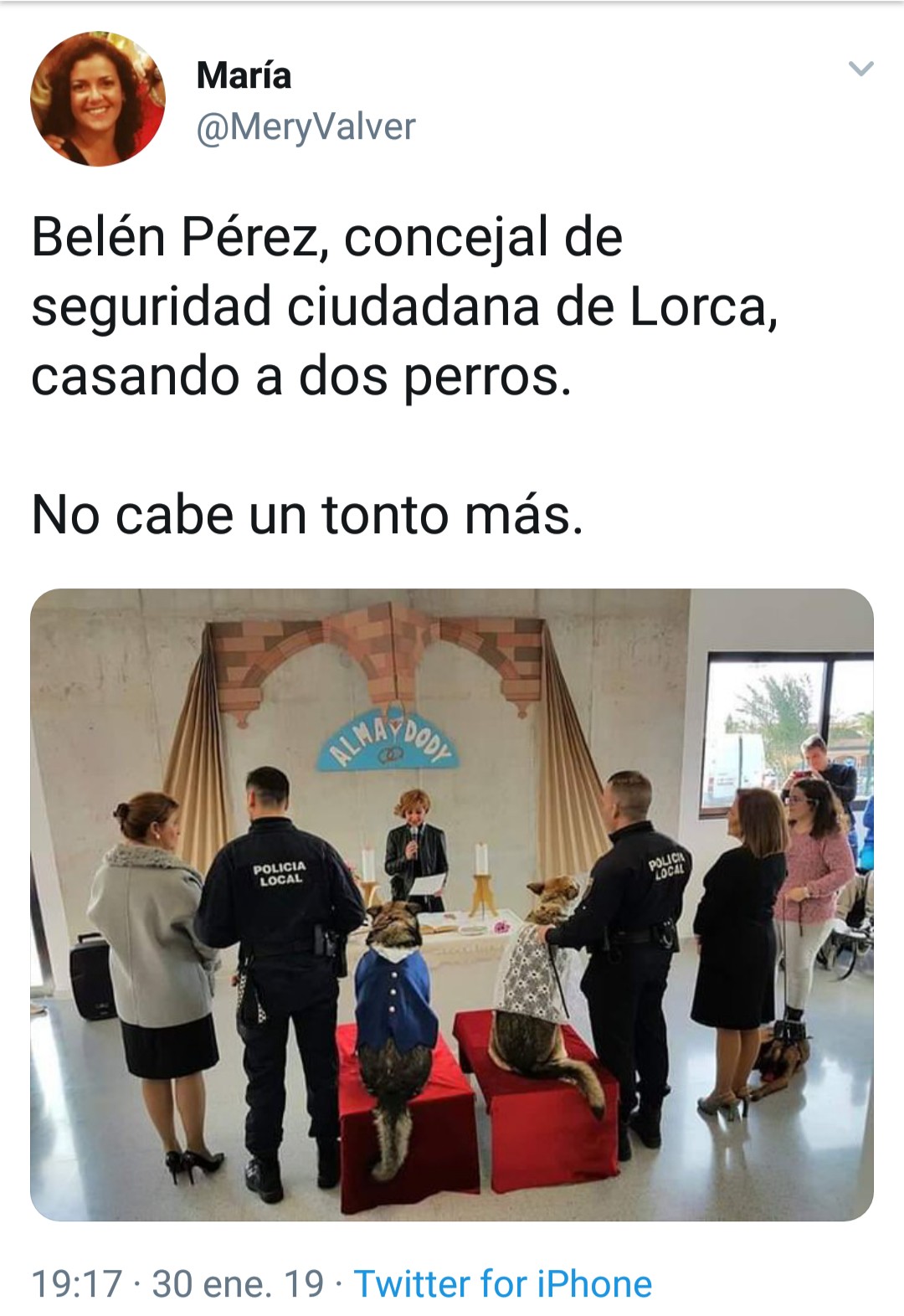 P.D. Lo de casar dos perros es de traca. Es un acto de suprema estupidez que por otro lado tampoco cuenta con el consentimiento expreso de los canes.