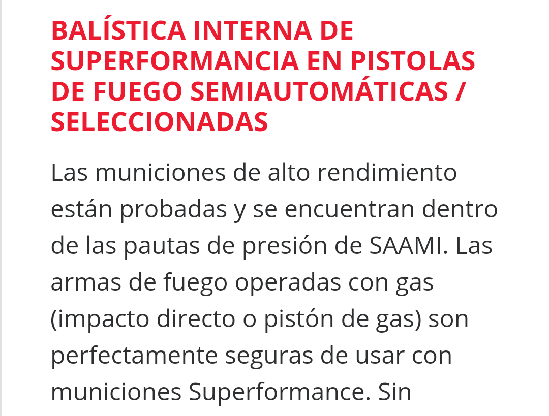 De esta soberbia explicación que hacen en este link,( de la cual los americanos son muy buenos en prevenir,explicando todo tipo de detalles y posibles consecuencias a veces con demasiado detalle...) yo entiendo que la pólvora que utilizan en la munición Superformance (que es una de ellas, pues no la utilizan en todas las que fabrican) puede llegar a producir algún tipo de aviso por sobrepresión, pues el combinar "el empujar la bala y abrir el cerrojo para expulsar la vaina" lo pueden llegar a realizar demasiado rápida y simultáneamente, ( y eso puede provocar daños en el arma..lo que ellos llaman "pressure signs") eso es lo que entiendo, pero puede tener solución si se toca la toma de gases...(cosa que yo no se hacer)