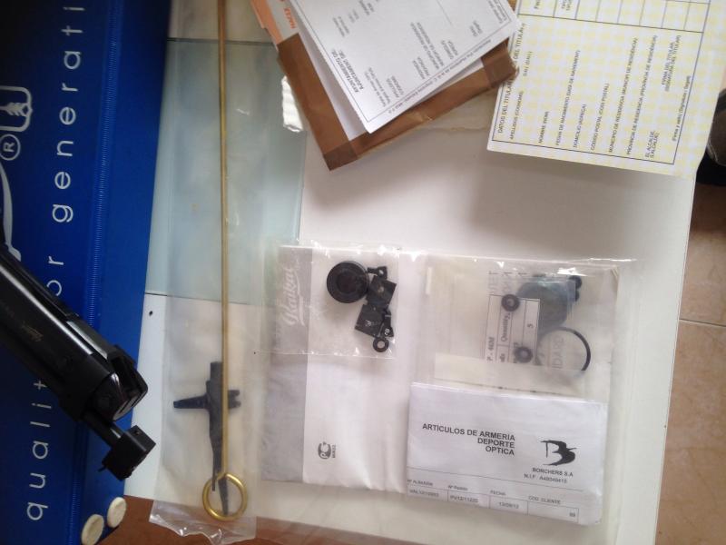 Adjunto: 1)maletin, 2) caja original.-3) elemento de desarme y limpieza.-4) juego de miras de recambio.-5)juego de juntas de recambio