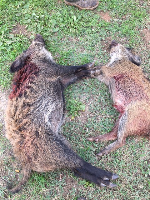 -Los jabalís cayeron casi al instante,tiros bien colocados y en un caso caminó 10 mts cerro abajo.