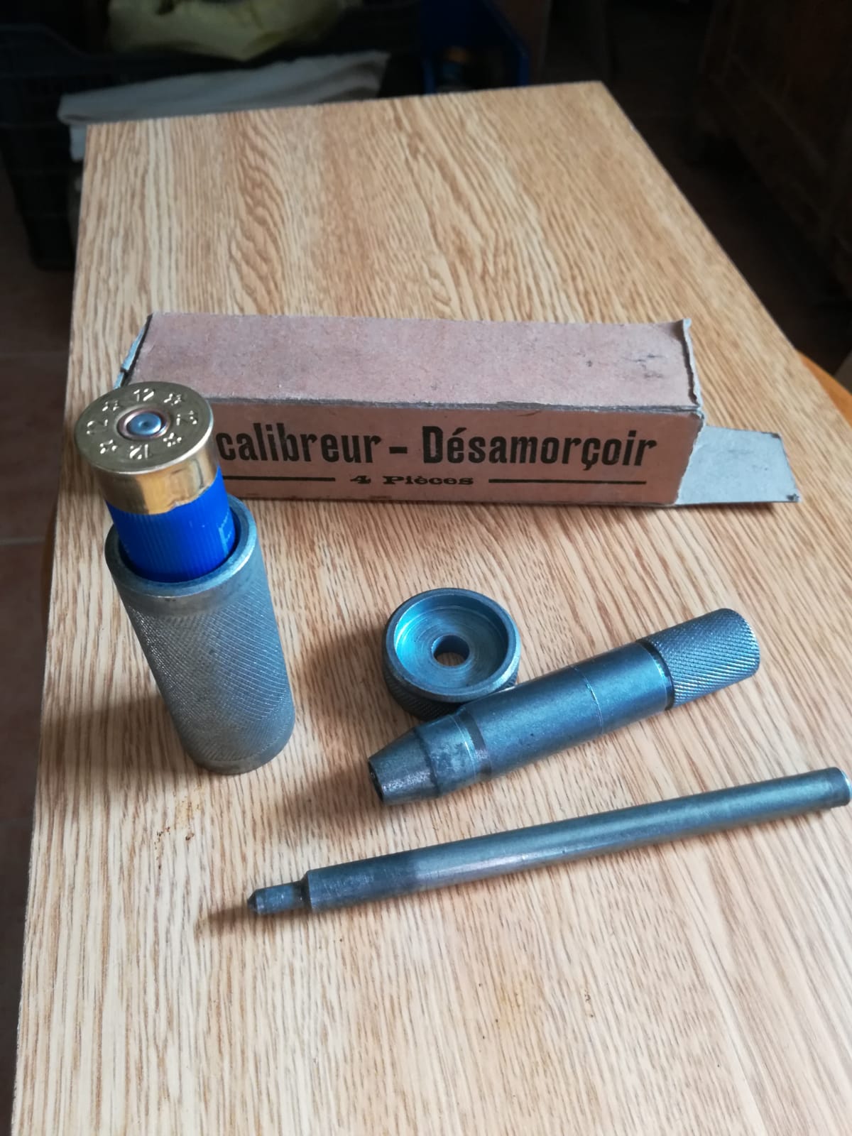 Accesorio de recarga del calibre 12 para escopeta. Empistona, desempistona y recalibra las vainas. Veinticinco euros (25,00€) portes incluidos península.