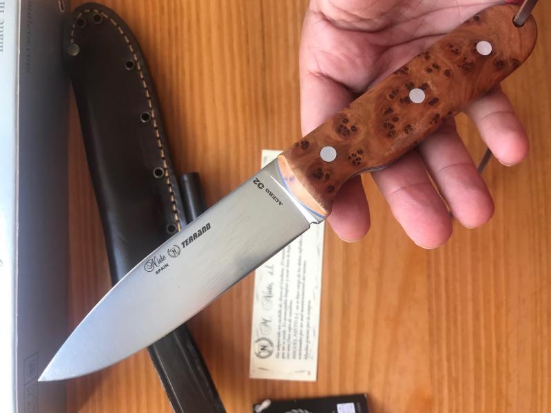 Vendo 4 Nieto terrano en acero carbono O2, uno con cachas de G-10 negro y el resto en diferentes maderas (olivo, tuya). Completos con funda y caja, nuevos a estrenar. El precio es de 70 euros envío incluido cada uno.