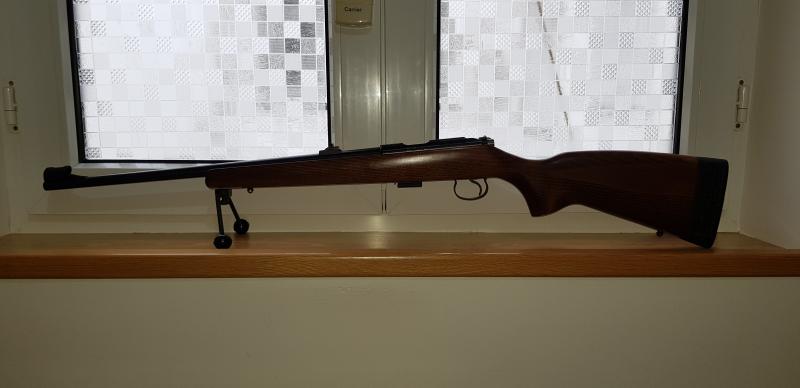ES UNA CARABINA DEL 22 LR, CON CAÑON DE 12 ESTRIAS PARA CENTRAR MEJOR EL PROYECTIL, DE CERROJO CON CARGADOR DE 5 PROYECTILES, MUY PRECISA, CAÑON INTRECAMBIABLE CON DOS TORNILLOS, GATILLO QUE SE LE ACABA DE INSTALAR SUPER FINO DE 0,5 KGR, MUY NUEVA, LA CARABINA TIENE POQUISIMO USO, MENOS DE 2000 DISPAROS.