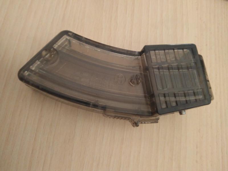 Vendo este cargador transparente de 10 balas para la ruger 10/22, es de la marca Eagle International, tiene un pulsador trasero que ayuda a liberarlo y tapa inferior para poder abrirlo y limpiarlo.