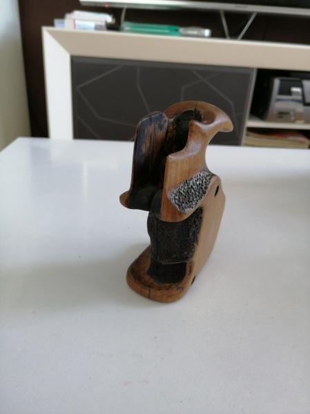 Se hizo para un revolver llama con el que tiré durante 19 años allá por los 90.. Ya no tiro. Está perfecta y es de castaño. Tamaño medio. 50 euros.