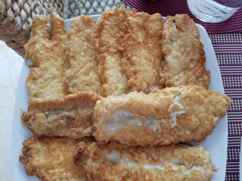 Hoy, comida sencilla y barata, bacaladitos en harina y huevo.