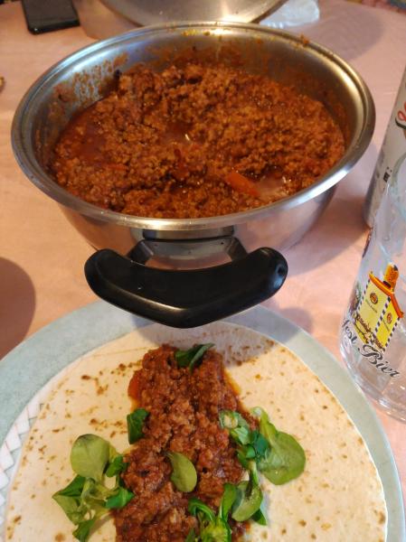 Tacos de chile casero con carne (sin judías) y, sin nacionalidad definida... :mrgreen:
