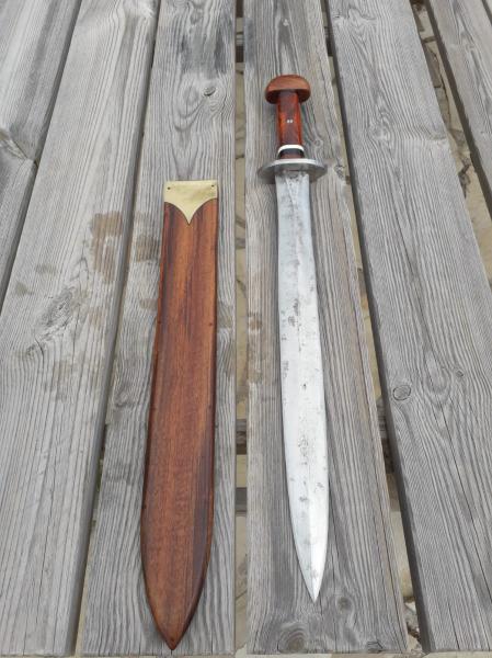 Se vende Gladius hispaniensis con maderas nobles y hoja de acero al carbono completamente funcional y afilada, realizada a partir de una hoja militar francesa del siglo XIX. Una maravilla única. 500 €.