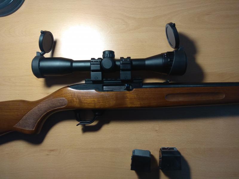 Hola, vendo Ruger 10/22 modelo Sporter. Lleva, extensor de palanca de cargador, montura de visor, visor modelo UTG Leapers 4x32 Mil-Dot y dos cargadores de 10. Llevará unos 600 disparos.