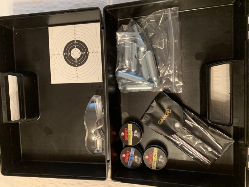 Malentin con kit de limpieza Gamo, gafas protectoras, dianas, muchas capsulas de co2 y perdigones