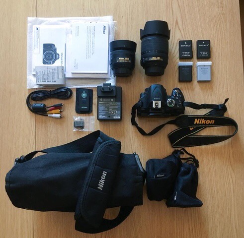 Cámara Reflex Nikon D5200 con 11.310 disparos, Objetivo VR AF-S Nikkor 18-105mm (+ filtro UV), Objetivo AF-S Nikkor 35mm, 4 baterías (2 originales), bolsa de transporte y todos los accesorios, mando inalámbrico no original e instrucciones. Muy bien cuidada, la vendo por falta de uso, interesados 679648714 se encuentra en Madrid. 450€ todo