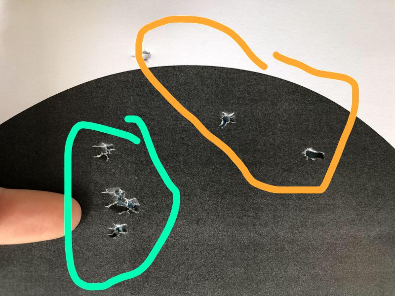 Pues es todo un reto...porque, que hay entre 5/7 centímetros entre los dos disparos más alejados??