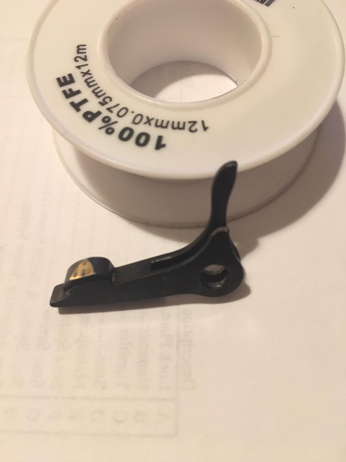 - 1 Bloqueo de tambor. Desconozco el fabricante pero son casi iguales. En concreto el diámetro del agujero del tornillo de giro es el mismo. Se acompaña de un tercer bloqueo que SI es original y al que le falta una patilla. Un mañoso la arregla teniendo el aparato de soldadura adecuado y el material. (Si a alguien interesa suelto 10€+gastos) NO DISPONIBLES