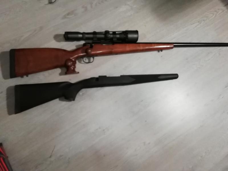 Dos culatas una la original y otra anatomica de madera hecha por culatero.