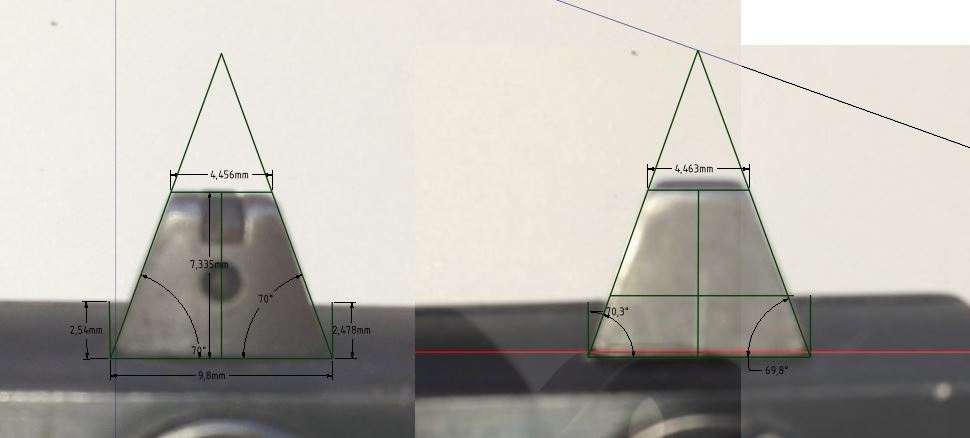 He estado midiendo la anchura y altura de la cola de milano de mi pistola, de un boceto que he visto que pusiste hace tiempo y me da las siguientes medidas: