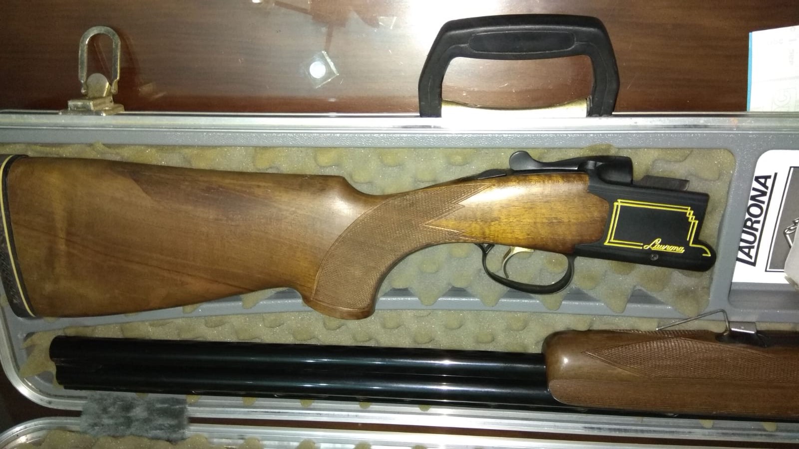 Pongo a la venta una escopeta Laurona superpuesta Sporting , con 71 centimetros de cañon , banda ancha , cuatro polichock (+,++,+++,++++) , gatillo regulable , expulsora , selector de tiro y culata para zurdos , incluye maletín .