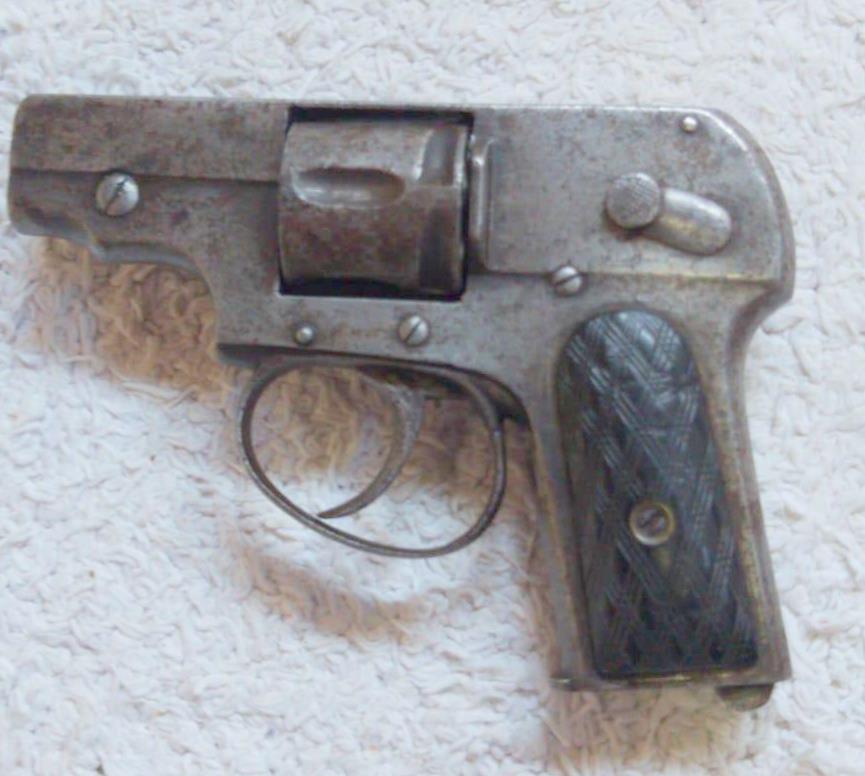 Buenas tardes:Alguien tiene información sobre este revólver.Supongo que se trata de un revólver tipo Velodog y que es del cal.6,35 (es lo único que tengo seguro.No posee marcas ni punzones de Banco de Pruebas.En principio pense que podría tratarse de un FAG,pero la forma del cañón me tiene descolacado.Agradecería cualquier información.