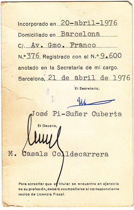 CARNET DE COLEGIADA EN DERECHO DE 1976