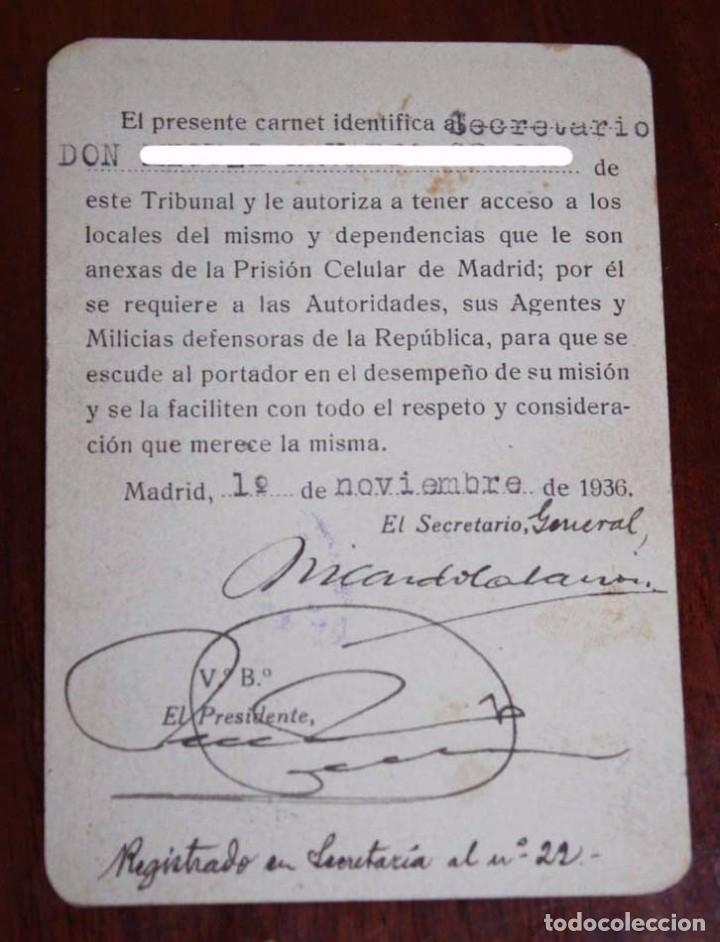 Este documento es muy importante y difícil de encontrar por eso lo venden caro, no creo que nadie después de la guerra se señalara como miembro de los tribunales populares, esta expedido en Madrid el 1 de noviembre de 1936.